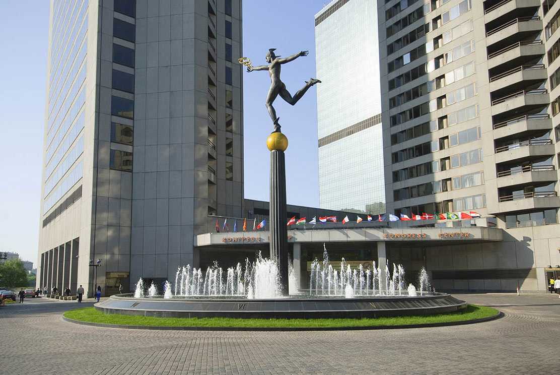 Скульптура Гермеса в Москве возле центра международной торговли.
